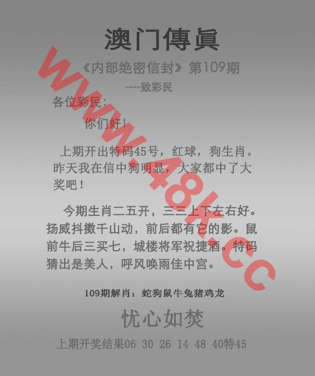 | 108期: ⑥肖 | 虎狗羊鸡猴兔 | 狗45中 |